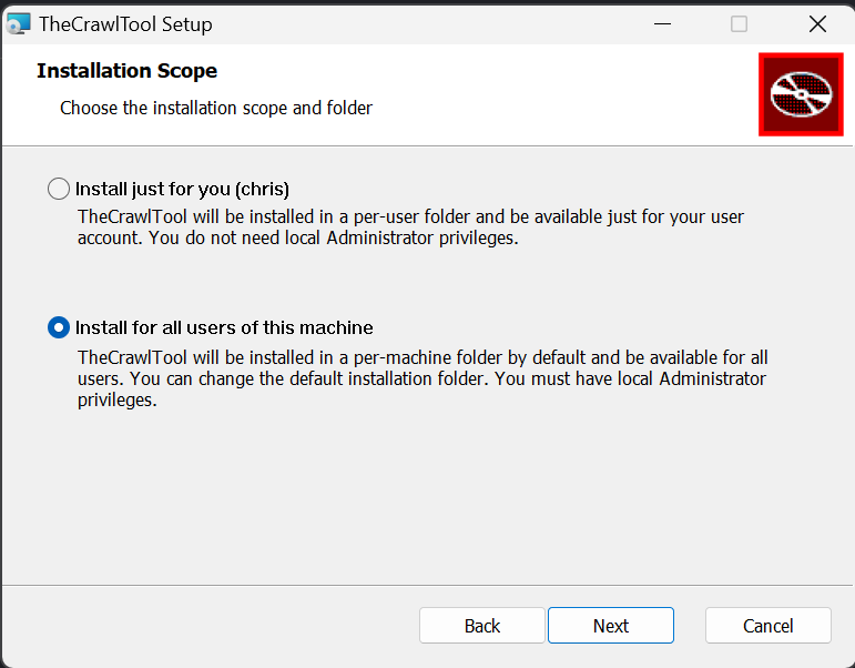 The Crawl Tool Windows Installer
