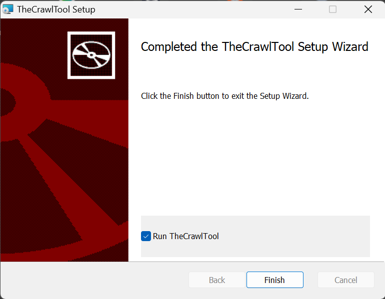 Congratulations. You have upgraded your computer with Agentic website crawling wizardry, or a free employee, depending how you like to describe it. The app has been added to your start menu. But you can leave the Run TheCrawlTool box checked and click Finish to open the app for the first time.